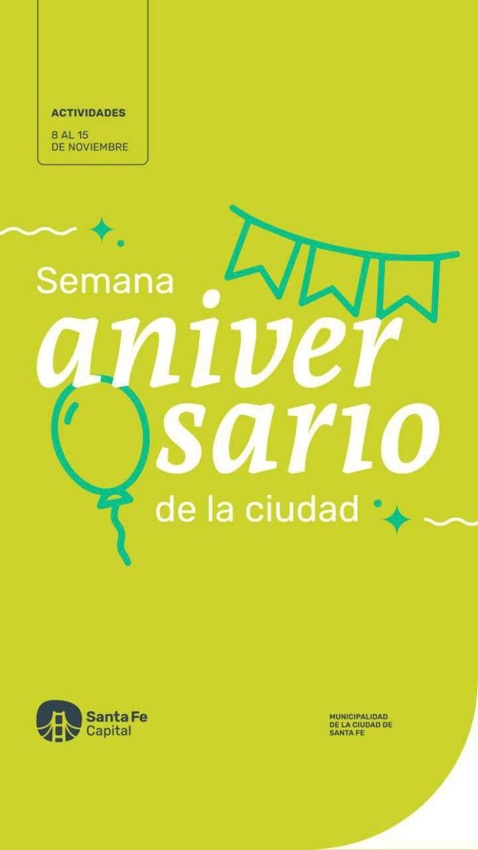 El sábado 15 de noviembre se celebrará un nuevo aniversario de la fundación de la ciudad de Santa Fe por sus 452 años. En ese marco, se organizaron diferentes actividades históricas, musicales, deportivas y de apoyo a la comunidad.