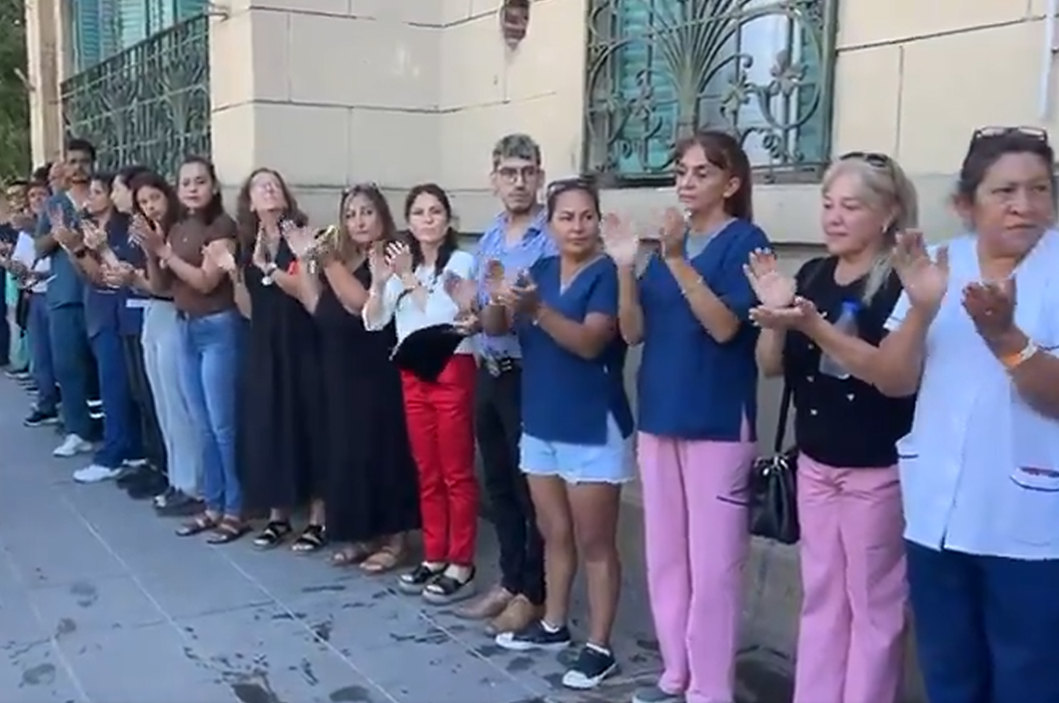 🔴AHORA | Abrazo simbólico de trabajadores del Hospital Cullen por un reclamo salarial. pic.twitter.com/L29pEptSaW