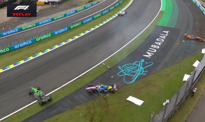 Sucedió en la curva tres el despiste de Franco Colapinto, Oscar Piastri y Gabriel Bortoleto y los tres no pudieron seguir luego de que el McLaren metiera agua en la pista y los autos perdieran el control. La carrera fue frenada con bandera roja.
