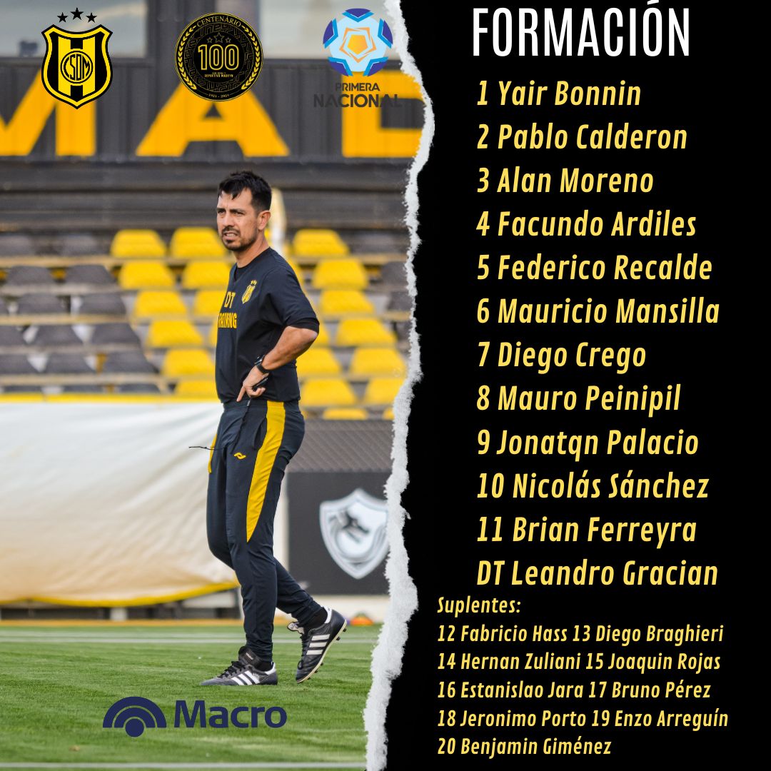 Deportivo Madryn: Yair Bonnin; Pablo Calderón, Mauricio Mansilla, Alan Moreno, Federico Recalde; Diego Crego, Mauro Peinipil, Brian Ferreyra, Facundo Ardiles; Jonatan Palacios y Nicolás Sánchez. DT: Leandro Gracián.