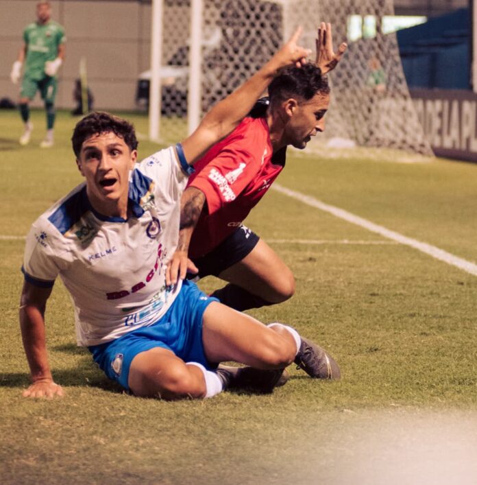 Sobre el cierre del primer tiempo, el local lo empató con un cabezazo de Leo Gomez, a los 41′.