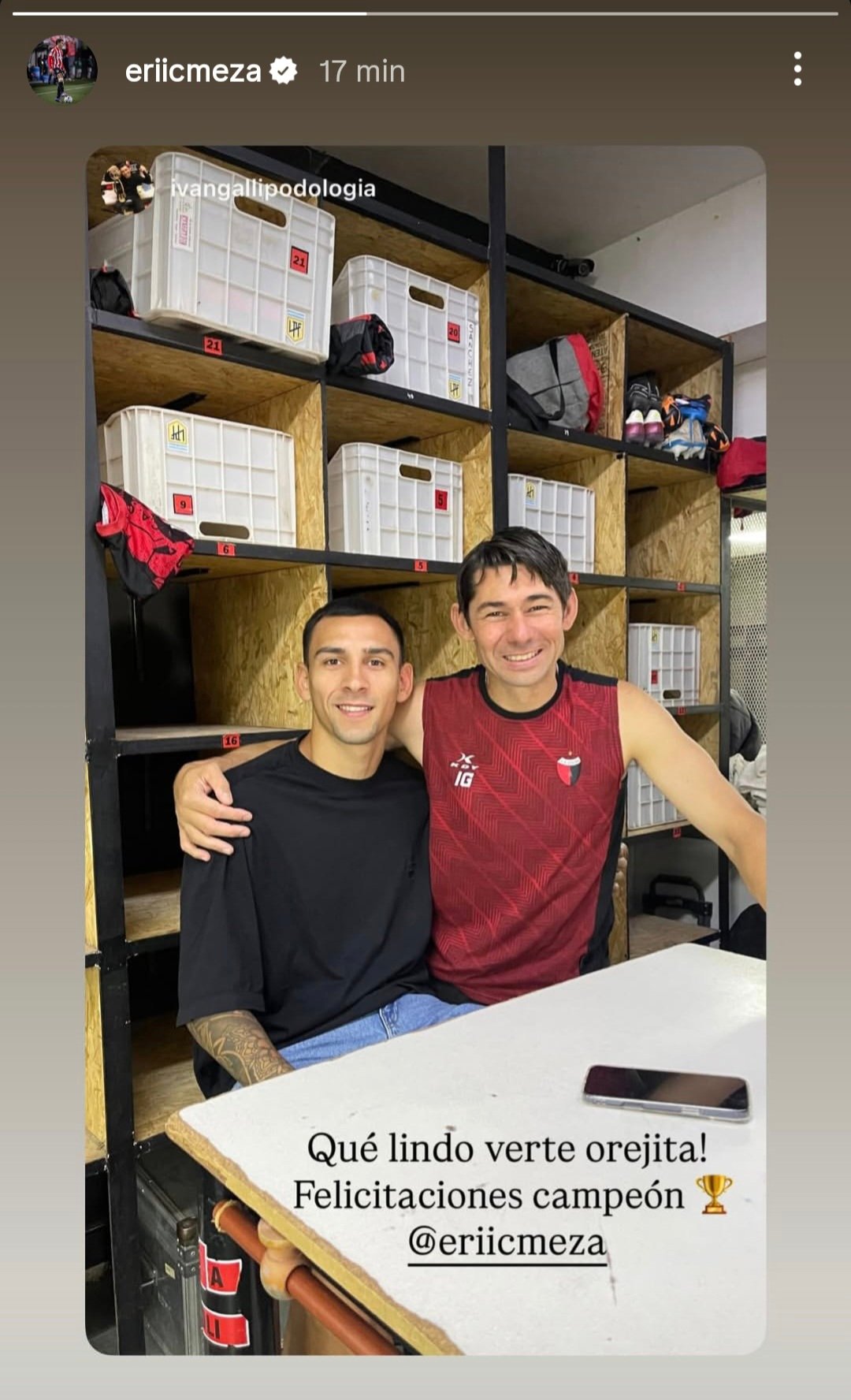 El futbolista Eric Meza visitó recientemente el Predio 4 de Junio de Colón, donde se formó y debutó profesionalmente. Durante su visita, compartió con los empleados, en su anterior visita donó 70 pelotas para el club.
