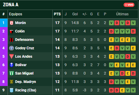 En el mundo Colón, la semana será clave para recuperar soldados y replantearse varias cosas. Con la tabla mostrando a Morón un escalón arriba por diferencias de goles, el equipo de Medrán necesita volver a hacerse fuerte de local para no perderle pisada al «Gallito». La atención también estará puesta en lo que haga Defensores de Belgrano esta tarde ante Racing de Córdoba, porque un resultado ahí puede apretar todavía más el lote de los de arriba.