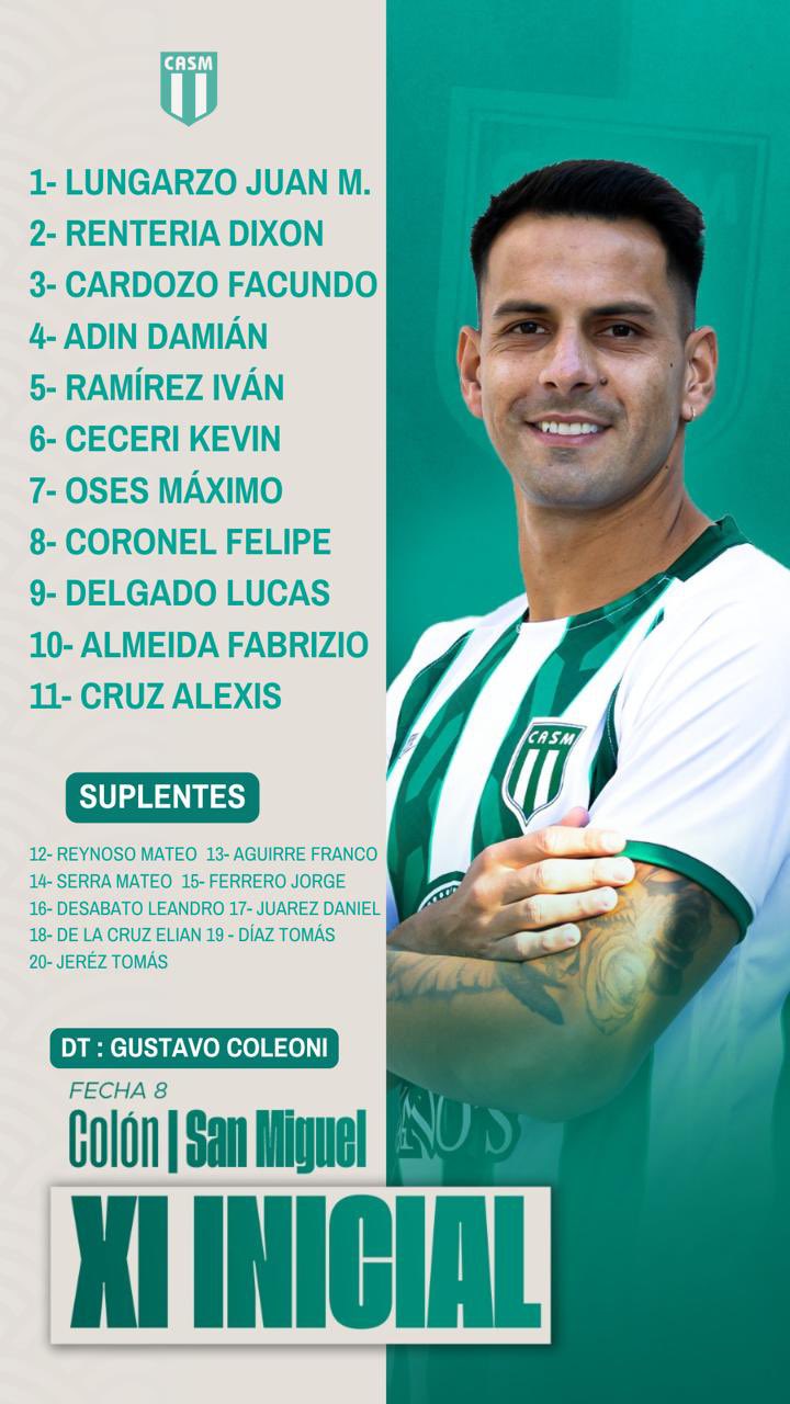 Es un partido clave para el conjunto dirigido por Ezequiel Medrán que tiene la posibilidad concreta de quedar, al menos hasta el domingo, como único puntero. Con 11 puntos en siete juegos, Colón comparte la primera colocación de la Zona A junto a Deportivo Morón y Racing de Córdoba, que juegan el domingo. En tanto, su rival San Miguel, de buena campaña, suma 9 y se ubica a solo dos puntos del Sabalero.