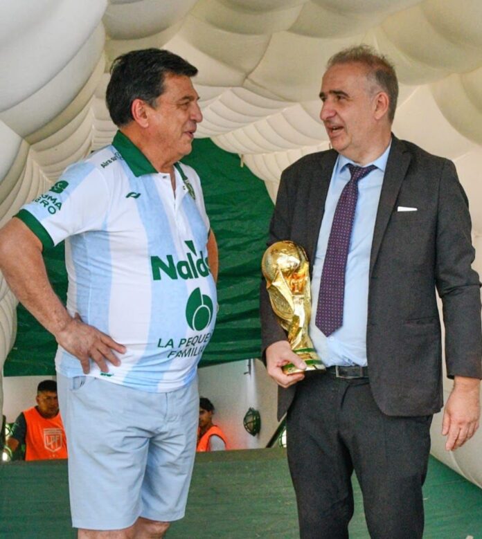 Sarmiento de Junín homenajeó a Daniel Passarella, campeón del mundo con la Selección Argentina en 1978, antes de un partido oficial. El ex defensor recibió una réplica del trofeo en el campo de juego.