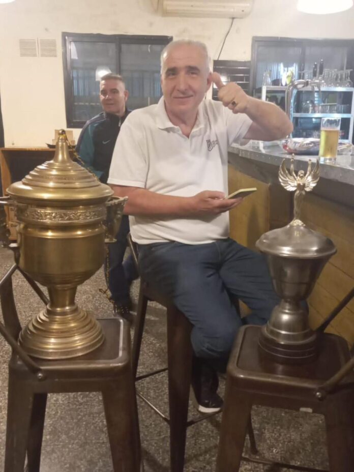 En su visita, posó con algunos trofeos que son una reliquia para el club por la obtención de distintos torneos de bochas en la década del ‘50.