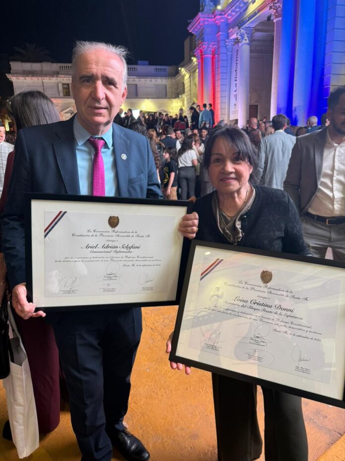 La provincia de Santa Fe tiene una nueva Constitución, y en el cierre de La Reforma el convencional Ariel Sclafani hizo entrega del diploma a la Doctora Luisa Donni, el mismo se debe a su labor como secretaria del bloque del