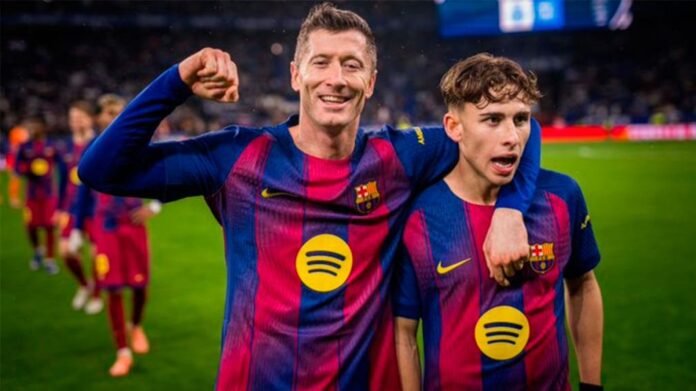 Joan García; Koundé, Cubarsí, Gerard Martín; Balde, Eric García, Pedri; Lamine Yamal, Fermín, Raphinha; Lewandowski.