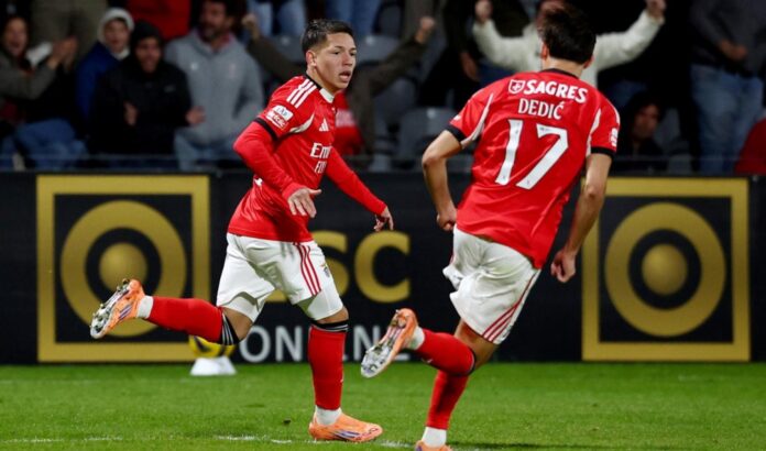 En medio de los rumores de su pase a River, Prestianni marcó un golazo para Benfica