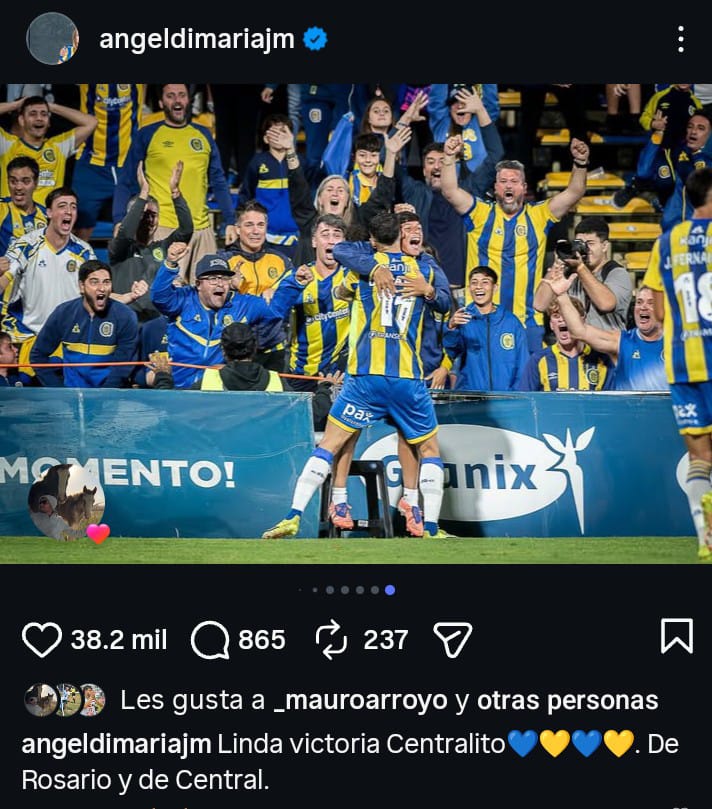 En su cuenta de Instagram, el Fideo publicó un posteo para celebrar una nueva victoria de su equipo. “Linda victoria Centralito. De Rosario y de Central”, tiró, junto a una serie de fotos suyas, en la que se incluye el festejo de gol con el alcanzapelotas Viola.