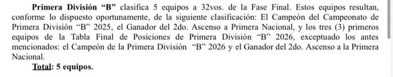El traspié reglamentario se encuentra en el Boletín Especial Nº 6812, el documento que establece las pautas de clasificación y el formato de disputa para la edición 2027 del torneo federal. Al detallar los cupos correspondientes a la Primera División B, el texto indica que una de las plazas pertenece al campeón del torneo 2025, rompiendo la coherencia del resto del boletín, el cual se basa exclusivamente en los méritos deportivos de la temporada 2026.