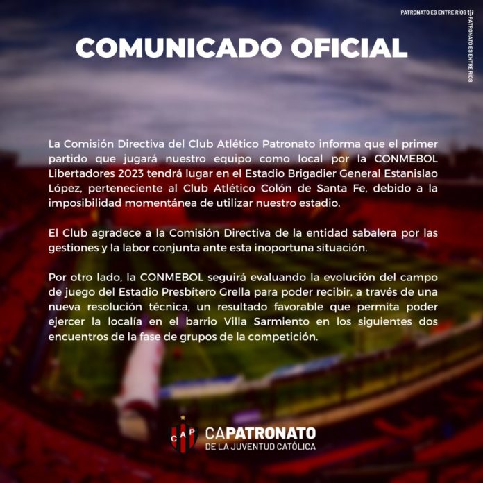 Como la cercanía del estreno no permite cumplir con todos los puntos que exige Conmebol, este miércoles la CD del Patrón confirmó en sus redes sociales y agradeció a Colón la posibilidad de prestar el Brigadier López para que se juegue el primer partido en el barrio Centenario.
