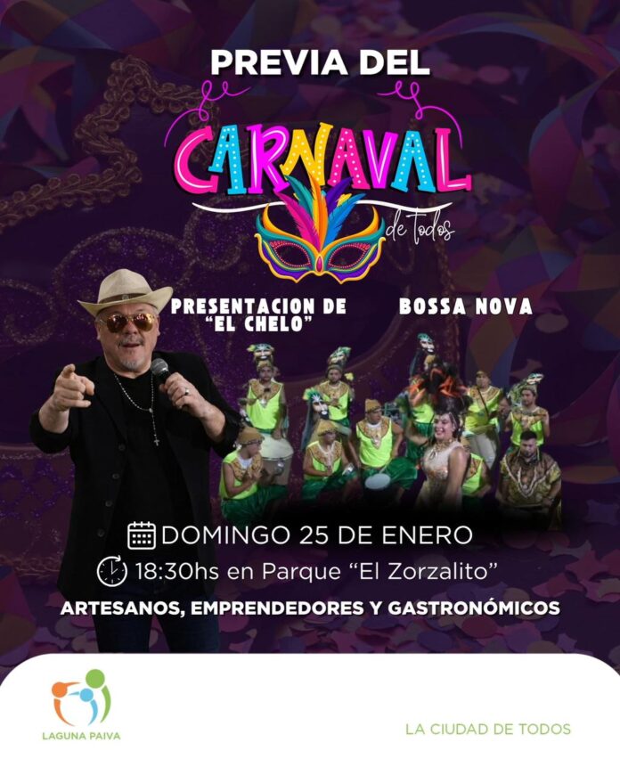 Como antesala del gran carnaval, el domingo 25 de enero, la Municipalidad organiza la Previa del Carnaval de Todos en el Parque “El Zorzalito” a partir de las 18:30 hs. La jornada contará con música de El Chelo y Bossa Nova, además de un espacio para artesanos, emprendedores y gastronómicos, ofreciendo un plan ideal para disfrutar en familia.