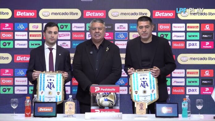 Luego de que los campeones del mundo con la Selección Argentina respondieran a las preguntas de la prensa, el Chiqui, mandamás de la Asociación del Fútbol Argentino, tomó el micrófono e invitó a los dos máximos mandatarios de los clubes, que se sentaron a su lado y también palpitaron el partido.
