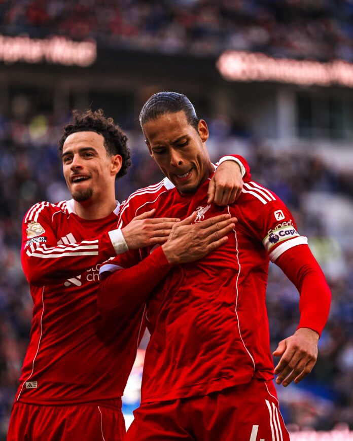 Fútbol Triunfo agónico del Liverpool de la mano de Van Dijk Destacadas Deuda histórica: Milei busca el aval del Congreso para cerrar el último capítulo del default de 2001 El Monumental se viste de gala: todo lo que tenés que saber del Superclásico Ezequiel Medran en conferencia de prensa: Vestuario dolido y promesa de salir adelante Colón perdió el partido y el liderazgo de La Primera Nacional ante Morón 19 de abril de 2026 En el Derbi de Merseyside, Liverpool venció 2-1 a Everton. Para los Reds anotaron Mohamed Salah a los 29’ y Virgil Van Dijk a los 90+10’. Para los locales había igualado Beto a los 54’. En la visita, Alexis Mac Allister ingresó a los 84’. Cuota FacebookTwitterWhatsAppTelegramEmail Seguí todas las noticias de Radiogol.com en Google News Artículo anteriorDeuda histórica: Milei busca el aval del Congreso para cerrar el último capítulo del default de 2001 Últimos artículos Deuda histórica: Milei busca el aval del Congreso para cerrar el último capítulo del default de 2001 Independiente dio vuelta la historia ante Defensa: Quinteros destacó la jerarquía y llevó tranquilidad por el goleador El Monumental se viste de gala: todo lo que tenés que saber del Superclásico Argentina no pudo con los Blitz Boks pero cerró un gran inicio en el SVNS World Championship Riquelme vuelve al Monumental: presencia confirmada y un Superclásico que paraliza al país