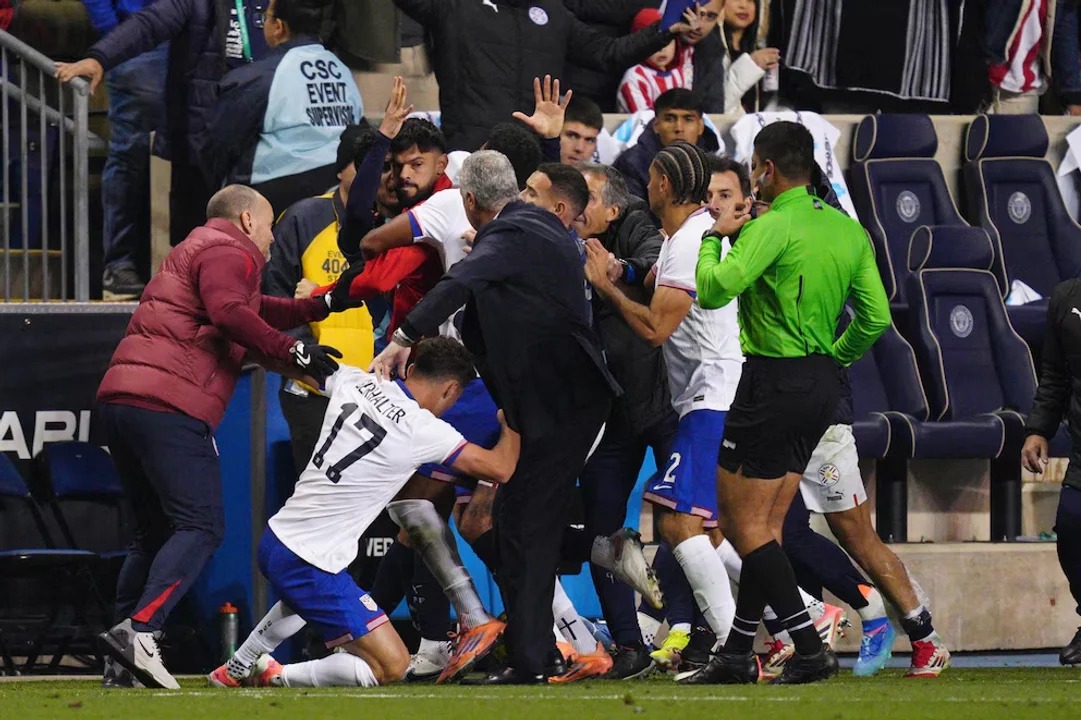 Todo comenzó en el minuto 91, cuando Gustavo Gómez, capitán de Paraguay, y Alex Freeman, defensor estadounidense, se enfrentaron por una pelota dividida en un saque de banda. Un cruce de palabras, seguido por la intervención de Sebastian Berhalter para defender a su compañero, derivó en empujones, forcejeos y la participación de varios jugadores. Incluso miembros de los bancos intentaron separar a los involucrados, aunque sin lograr evitar que la situación escalara.