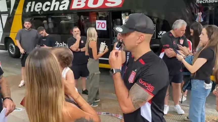 Verón, UNO MÁS: la Brujita viajó a San Nicolás en micro con los hinchas de Estudiantes