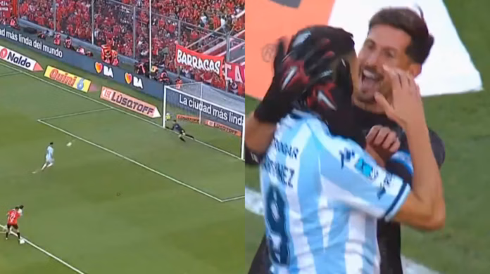 El delantero de la Academia recurrió a una particular forma de rematar en uno de los encuentros más emblemáticos del fútbol argentino. Tras el errado, el arquero del Rojo corrió para enfrentar a Martínez y terminó abrazándolo para evitar sanciones del árbitro.