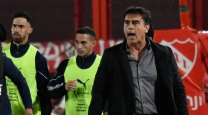 Tras una catarata de insultos al árbitro Fernando Echenique se fue expulsado el entrenador de Independiente Gustavo Quinteros.