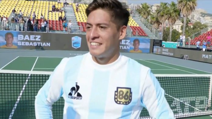 El tenista argentino Sebastián Báez dejó atrás una serie adversa de más de tres meses sin triunfos y se instaló en los octavos de final del ATP 250 de Nápoles al imponerse este miércoles ante el italiano Lorenzo Sonego por 7-5 y 7-6 (7-3), para festejarlo de manera especial, con la réplica de la camiseta con la que Argentina ganó el Mundial de México 1986 con Diego Maradona como genio y figura.