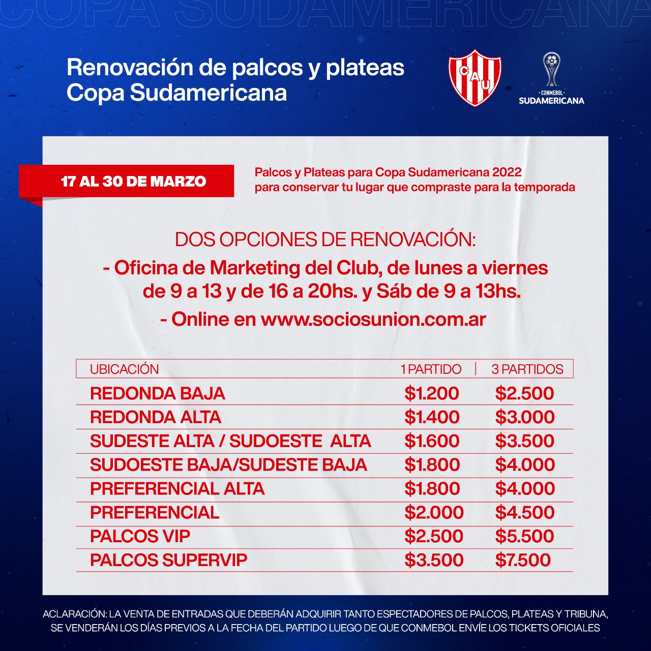 Es por eso que el club precisó cómo serán los trámites de renovación de abonos para palcos y plateas para el certamen internacional, aclarando que si un socio ya cuenta con una ubicación para el torneo local, podrá mantenerla y adquirirla para ver al equipo en la Sudamericana.