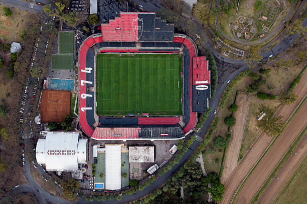 Aerial view of Coloso Del Parque Marcelo Bielsa stadium, home of Newell's Old Boys football club, in Rosario, Argentina, taken on October 20, 2022. Local passion, makeshift pitches, good nutrition and a touch of magic are the combo that makes the northern city of Rosario a breeding ground for the best players in Argentinian football, with Lionel Messi and Angel Di Maria being the most recent representatives in Qatar. (Photo by Luis ROBAYO / AFP) (Photo by LUIS ROBAYO/AFP via Getty Images)