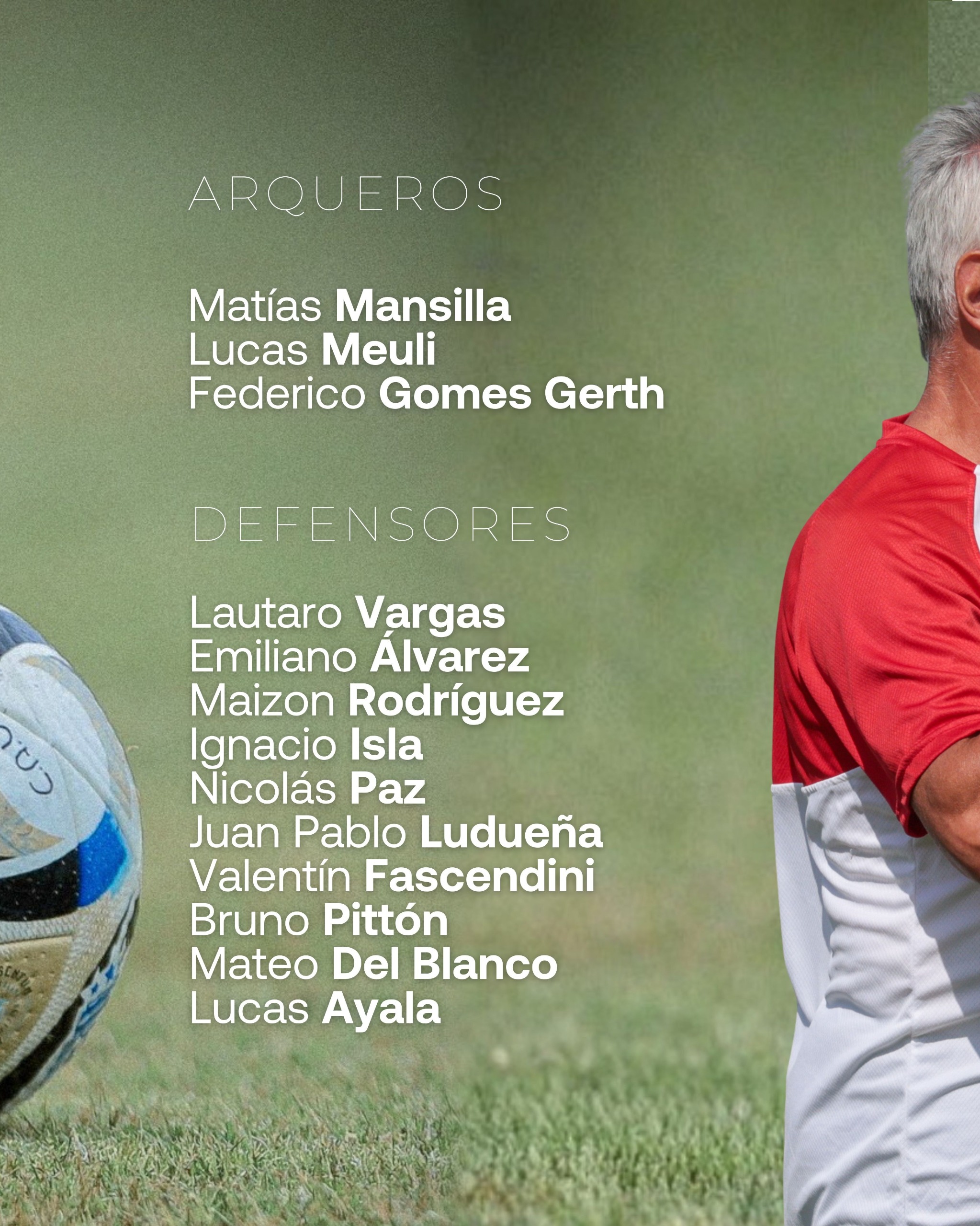 Bajo los tres palos, los convocados son Matías Mansilla y Lucas Meuli y Federico Goméz Gerth quienes integran la rotación para el arco. En la última línea, aparecen Lautaro Vargas, Maizon Rodríguez, Valentín Fascendini, Mateo Del Blanco, Nicolás Paz, Bruno Pittón, Juan Pablo Ludueña y Emiliano Álvarez, Ignacio Isla y Lucas Ayala opciones que se reparten entre centrales y laterales.