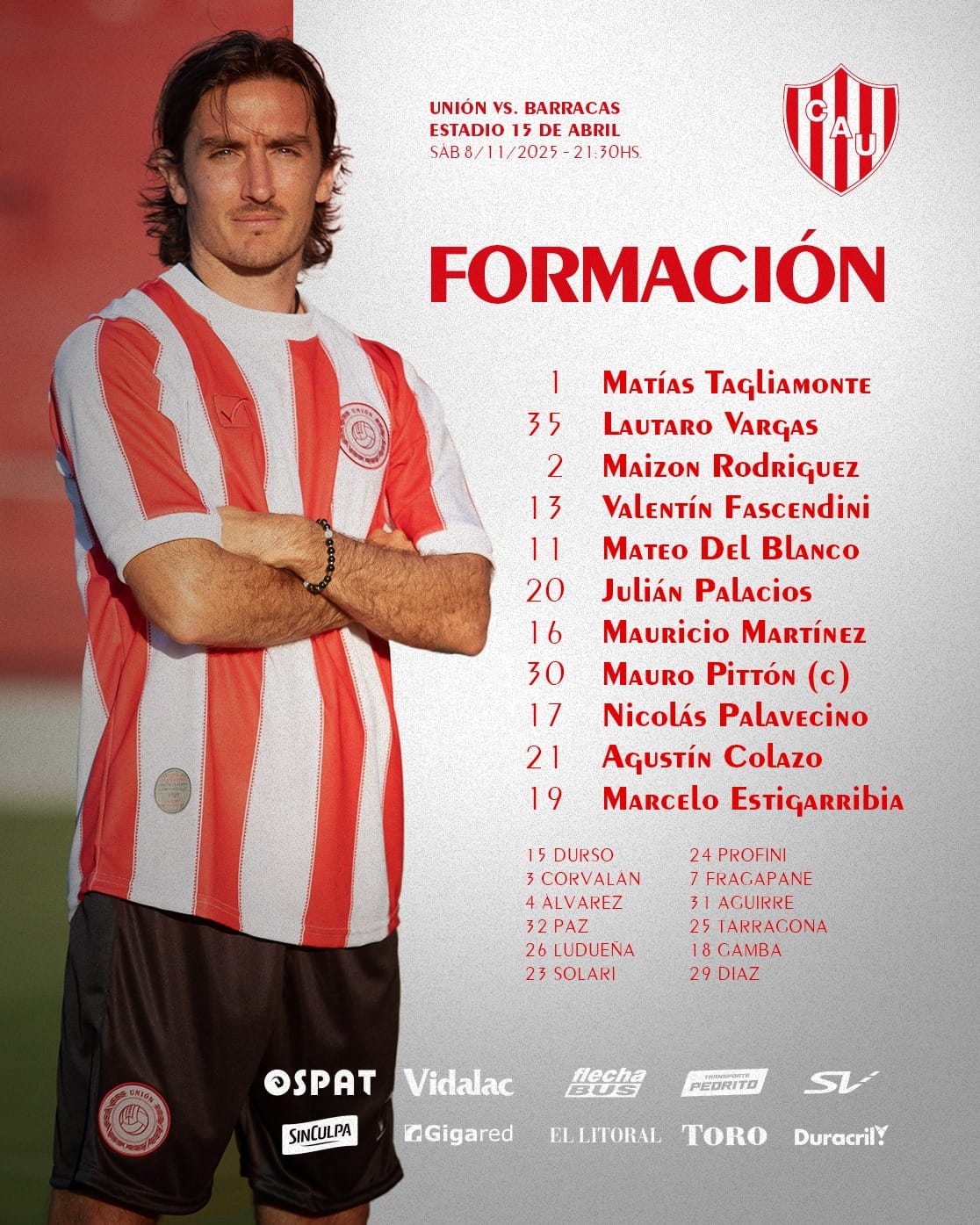 Unión: Matías Tagliamonte; Mateo Del Blanco, Valentín Fascendini, Maizon Rodríguez, Lautaro Vargas; Nicolás Palavecino, Mauricio Martínez, Mauro Pittón, Julián Palacios; Agustín Colazo y Marcelo Estigarribia. DT: Leonardo Madelón.
