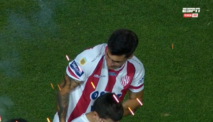 Todo sucedió apenas el equipo ingresó al campo de juego. Uno de los dispositivos pirotécnicos salió disparado hacia una zona inesperada y explotó a escasos centímetros del jugador, que reaccionó dando un paso atrás y girando la cabeza. Por fortuna, no hubo heridos, pero el riesgo fue evidente.