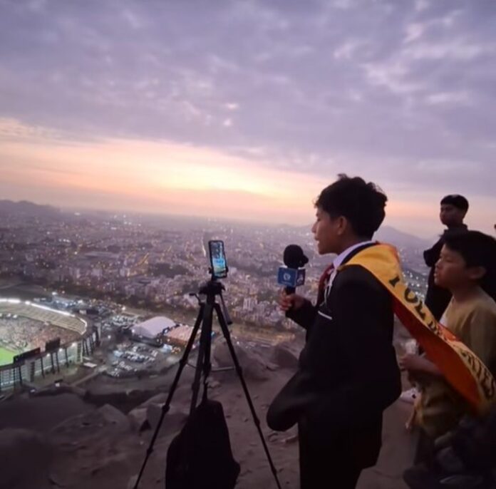 Cliver Huamán, quien no pudo acreditarse por ser menor de edad, subió hasta la cima de un cerro lindero al Monumental de Lima para cumplir con su misión.