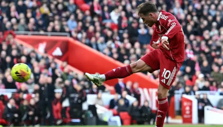 Alexis Mac Allister brilló en Anfield con un golazo: su volea en la goleada del Liverpool ante West Ham