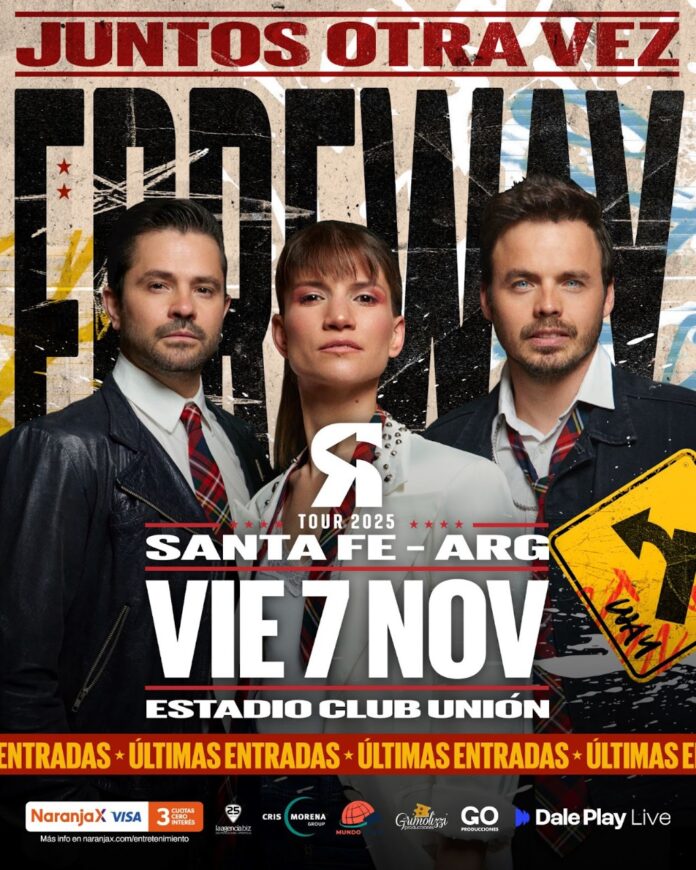 Se viene una noche única en Santa Fe Desde que anunciaron su regreso, Erreway no ha dejado de sorprender: con cada fecha suman más hitos, agotando recintos en Chile, Uruguay, Ecuador, Perú, Italia, España, Chipre y Grecia, y ahora iniciando su esperado recorrido por Argentina.