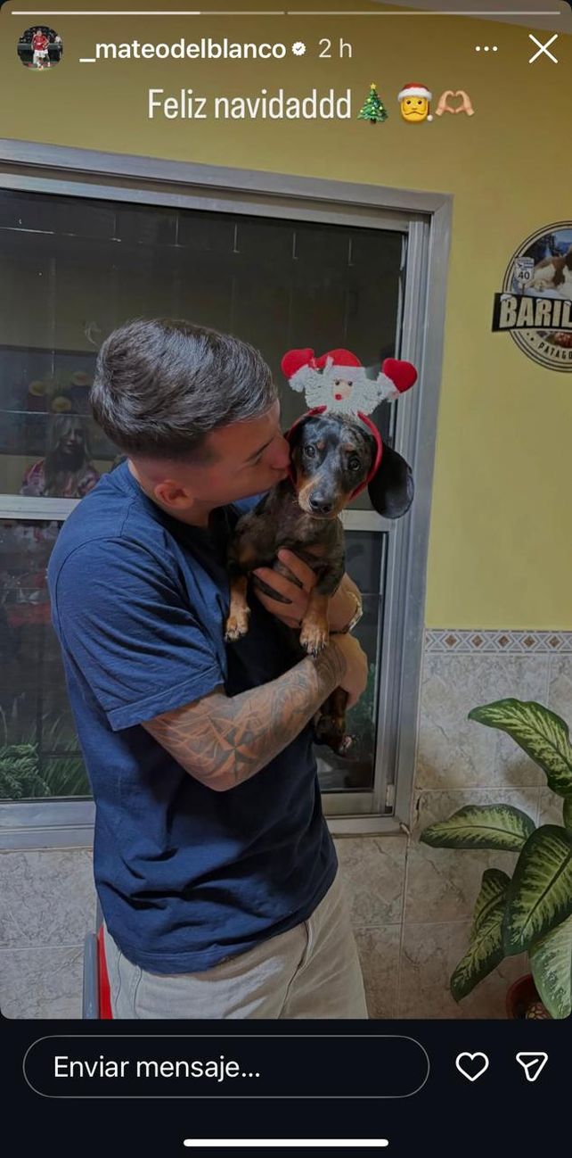 Por último, Mateo Del Blanco aportó una cuota de simpatía al mostrar su festejo junto a su familia y su inseparable perrito salchicha, que también fue parte de la escena navideña.