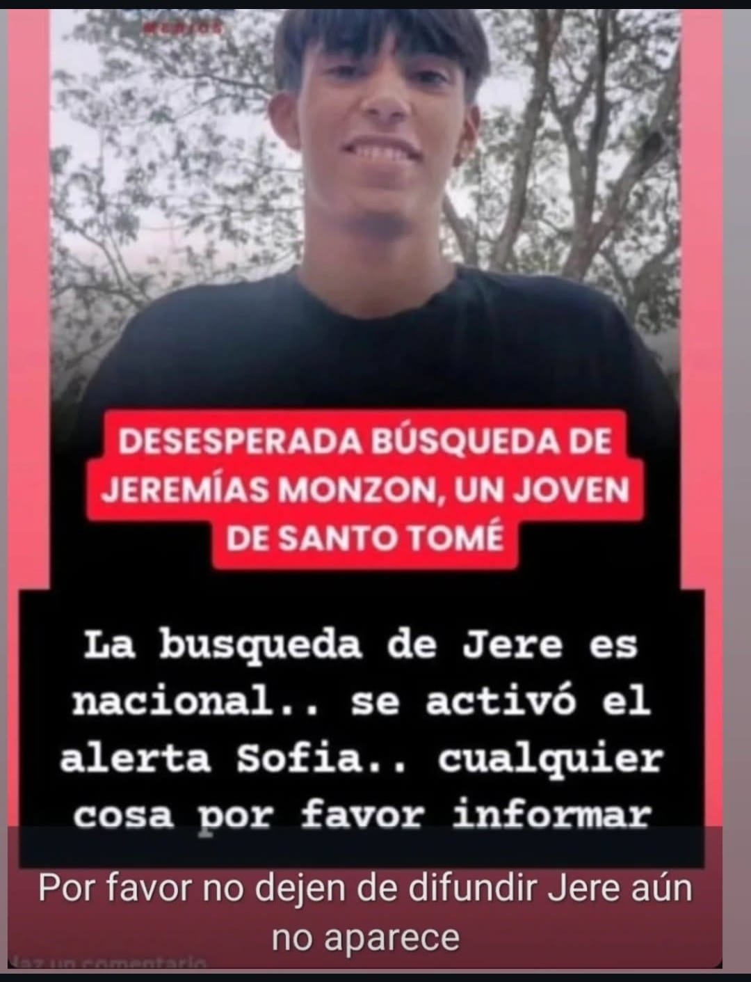 Por estas horas, la familia de Jeremías Monzón se encuentra angustiada y en alertas por la desaparición del adolescente de 15 años en la ciudad de Santo Tomé.