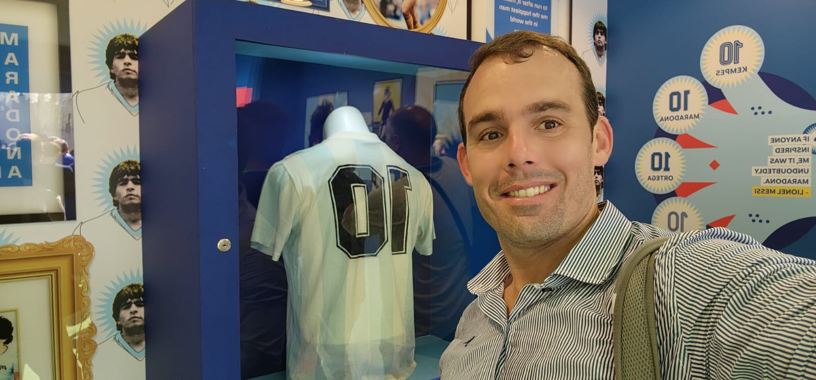 Los invitados y los hinchas que asistieron pudieron ver imágenes de Maradona, aunque lo más llamativo fueron las camisetas que usó a lo largo de su carrera. Pierluigi Salemme y Antonio Luise, dos fanáticos napolitanos, cedieron más de 450 prendas que vistió Diego. Ahí mismo se encontraron las vestimentas que se calzó en el Mundial juvenil de Japón 1979 con el número pintado en la espalda y contra Yugoslavia en el Mundial de Italia 1990.