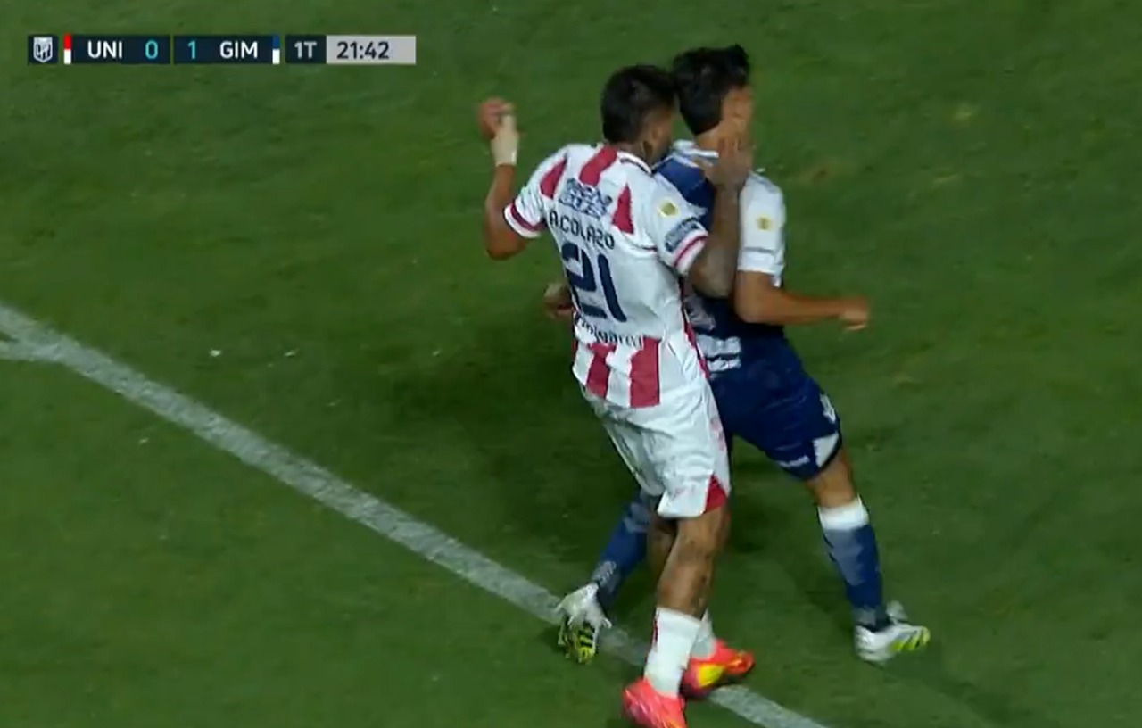 A los 21 minutos del primer tiempo, Agustín Colazo sufrió un codazo de Giampoli en el área, lo que pudo haber sido penal para Unión. La jugada no fue advertida por el VAR.