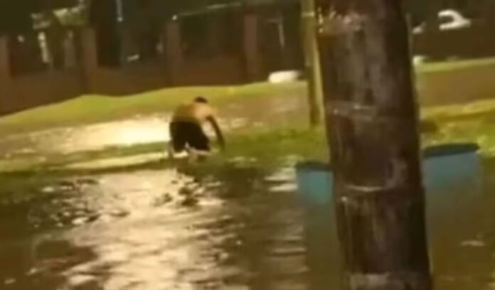 Los testigos relataron que todo sucedió en cuestión de segundos, en un contexto de calles completamente cubiertas por el agua tras varias horas de precipitaciones intensas.