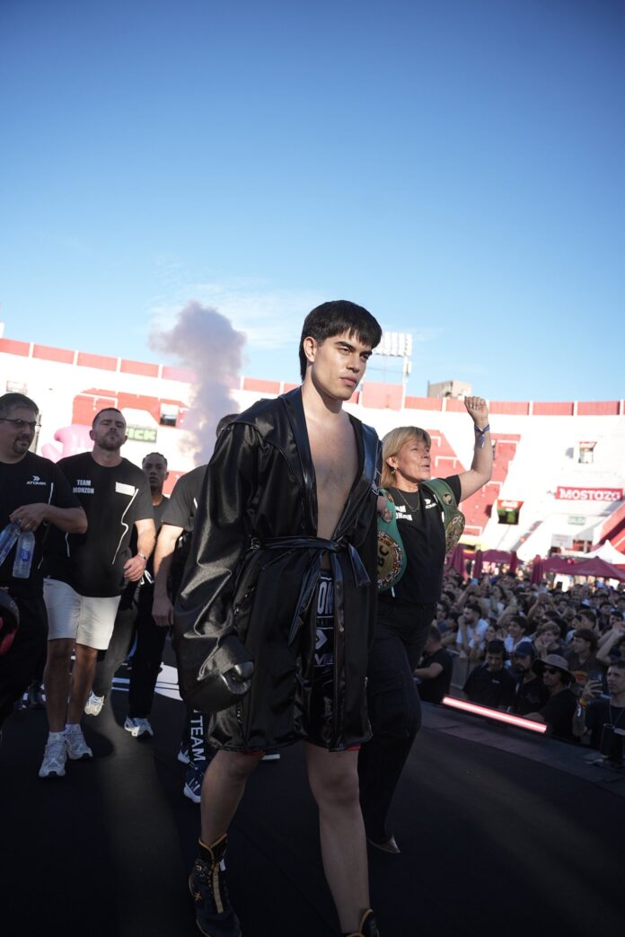 En el evento «Parense de Manos 3» que se está realizando en la cancha de Huracán, Agustín Monzón, nieto de histórico boxeador ingresó con «Soy sabalero» de Los Palmeras, a lo que fue la primer pelea de la velada frente al nieto de Oscar “Ringo” Bonavena, Franco Bonavena.