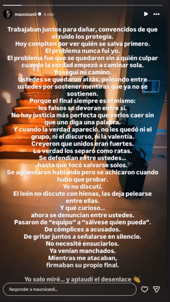Mauro Icardi arremetió con dureza contra Wanda Nara y Nicolás Payarola, su exabogado, horas después de que la mediática declarara como testigo en la causa en la que él está detenido. En un comunicado, el futbolista aseguró que ambos trabajaban juntos para dañarlo y que ahora, al revelarse la verdad, se enfrentan entre sí. “El león no discute con hienas, las deja pelearse entre ellas”, remató Icardi, dejando en claro que observó el desenlace sin intervenir.