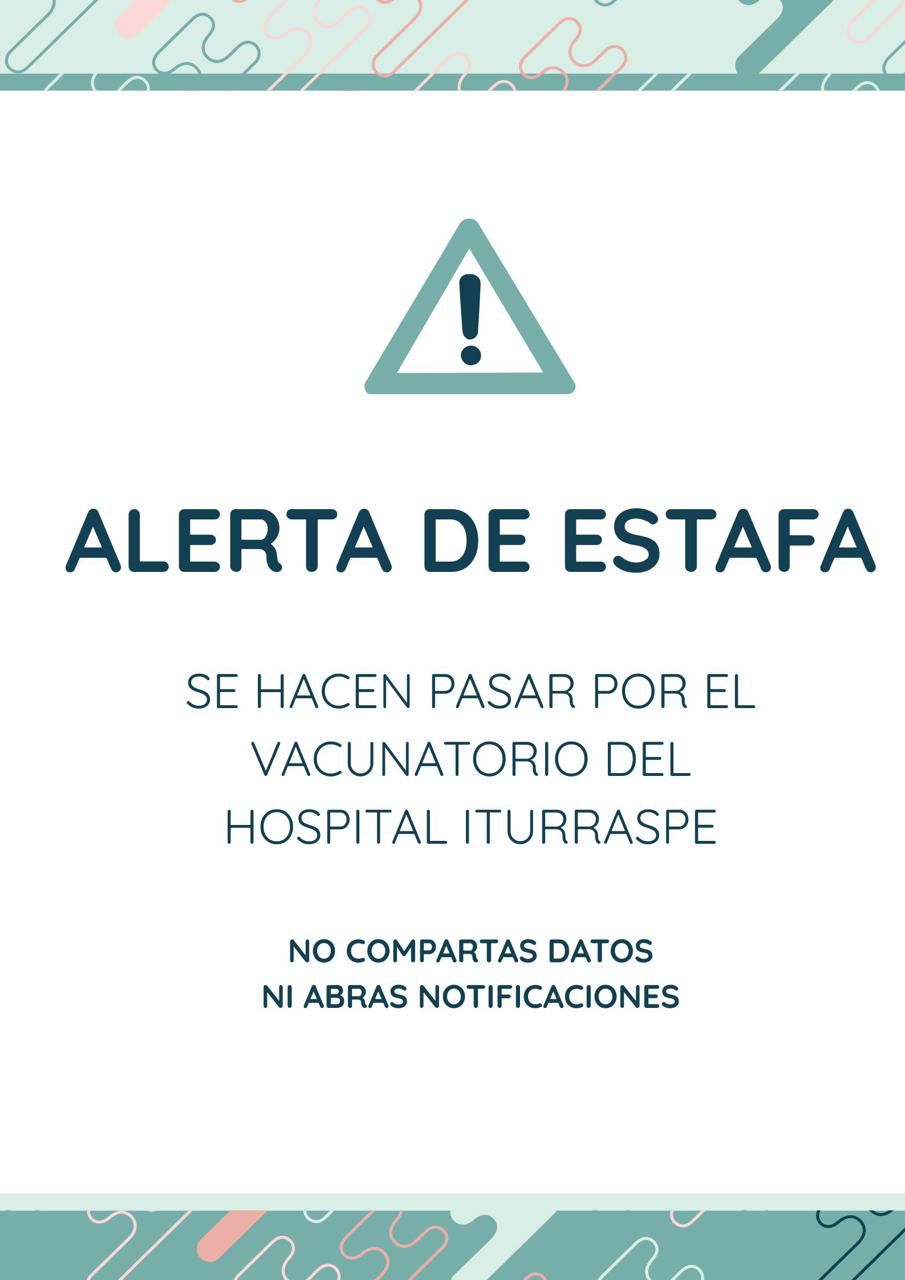 Desde el Hospital Iturraspe informamos que se han detectado llamadas telefónicas fraudulentas de personas que se hacen pasar por el vacunatorio del hospital.