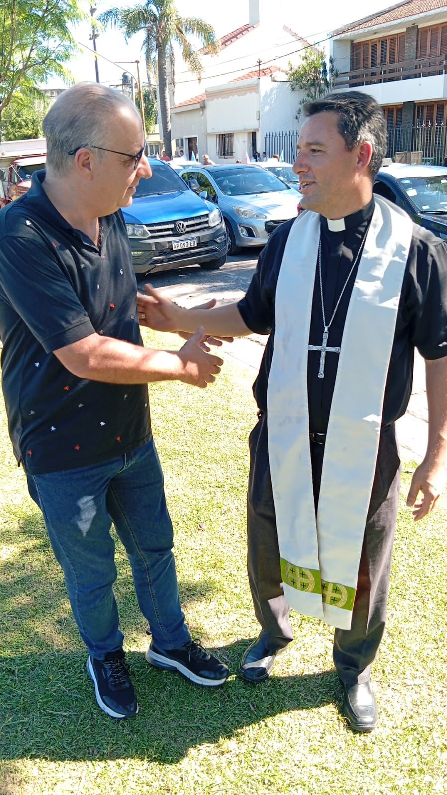 Con motivo de la realización número 20 de la Caravana de Taxistas por la Capital de la Provincia llevando la imagen de la Virgen de Guadalupe, Ariel Sclafani y el obispo de Santa Fe Monseñor Matías Vecino se encontraron y saludaron afectuosamente.